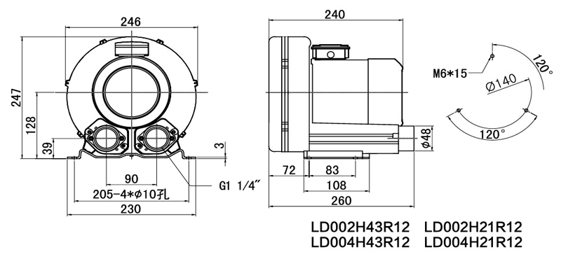 LD004H43R12(0.4KW、0.5KW)高壓鼓風(fēng)機