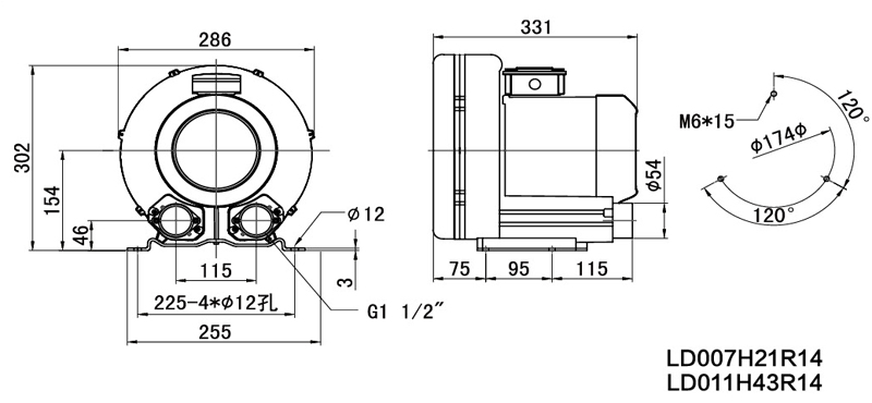 LD007H21R14(0.7KW、0.83KW)高壓鼓風(fēng)機(jī)