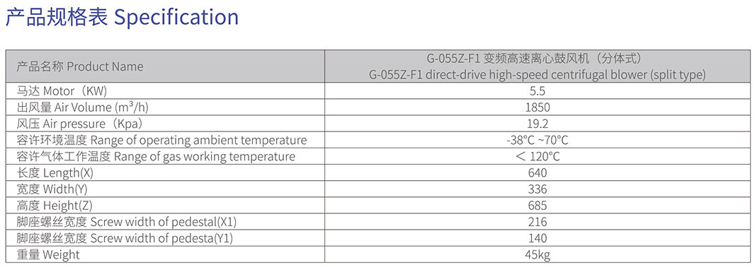 歐冠G-055Z-F1變頻高速離心鼓風(fēng)機(jī)(分體式)