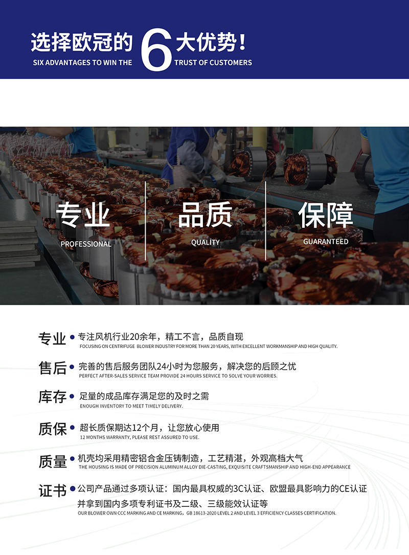 廣東歐冠智能風(fēng)機股份有限公司是專業(yè)鼓風(fēng)機研發(fā)、生產(chǎn)、銷售為一體的國家高新技術(shù)企業(yè)。公司成立于2001年,是國內(nèi)中壓風(fēng)機行業(yè)的龍頭標(biāo)桿企業(yè)。